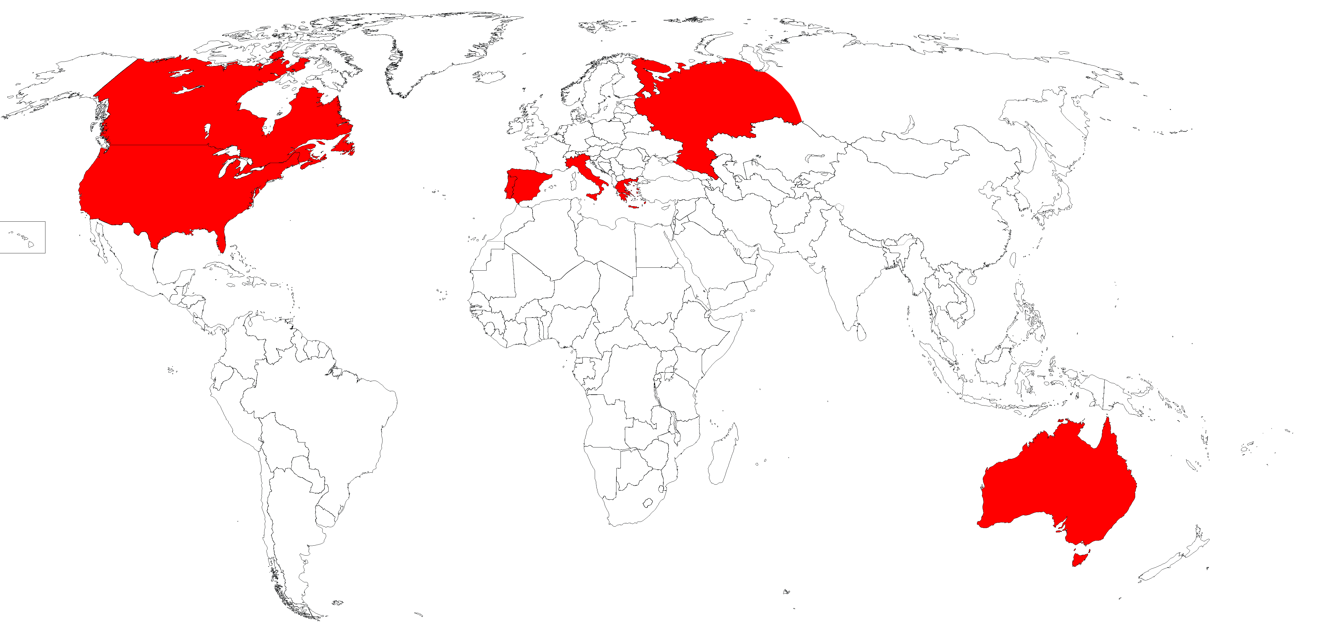 In den USA, dem westlichen Teilen Russlands, Kanada und der südlichen Hälfte Australiens steigt die Flammenintensität stetig und Bodenfeuer schlägt schnell in einen Vollbrand um. Große Waldflächen verhindern das frühzeitige und effiziente Ablöschen und erhöht die Gefahr für die Zivilisation.
